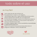 PIQUES DE LAVADO: Como te comentábamos se lavan en lavarropas pero también puede ser a mano y se secan al sol. Fundamental que se lave con agua fría ya que el agua caliente fija el hierro de la sangre en la tela y por tanto se manchan. Cuanto más se demore en lavar más difícil es quitar las manchas. Se pueden poner en remojo y eso también ayuda a apreciar mejor el color de tu flujo menstrual para monitorear la salud de tu ciclo.